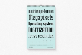 The objective of this wall calendar is to raise awareness on gender imbalance in typography by shining light on typefaces designed by female type designers.